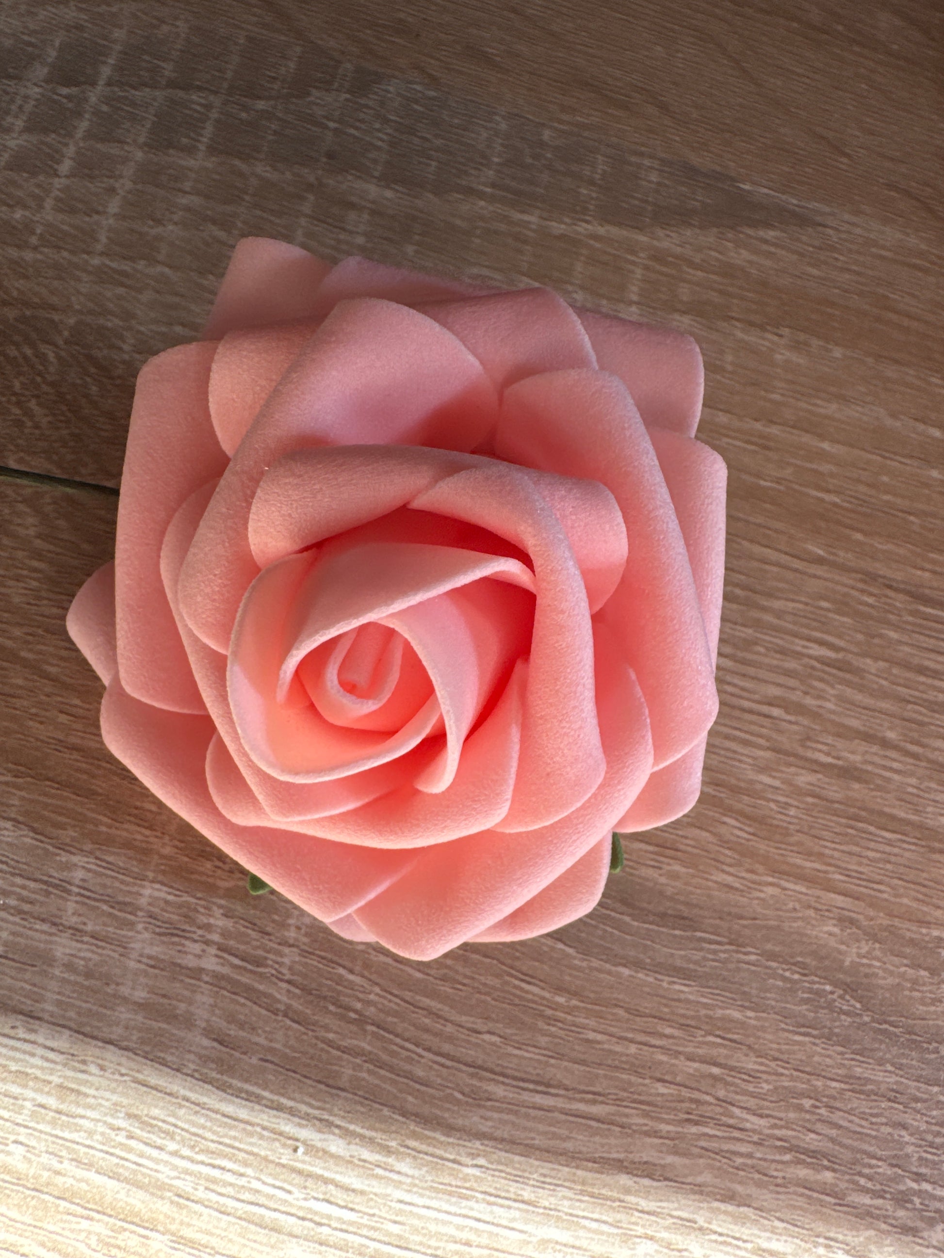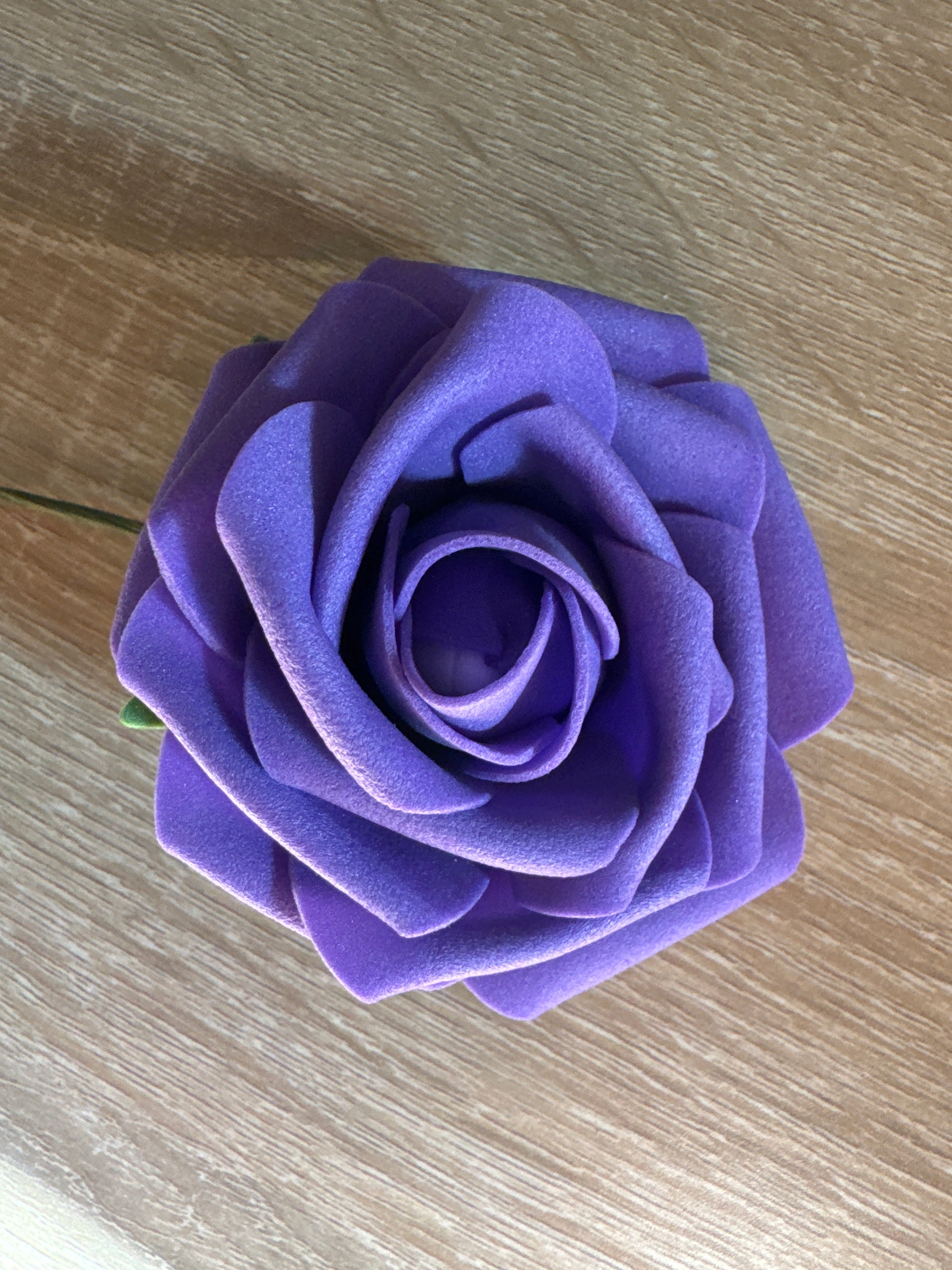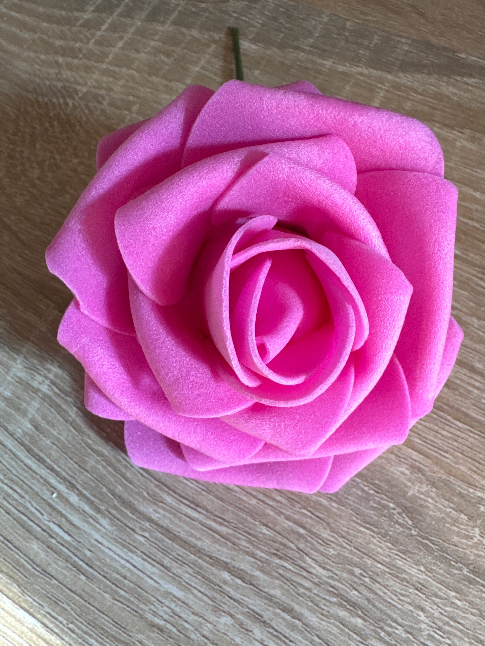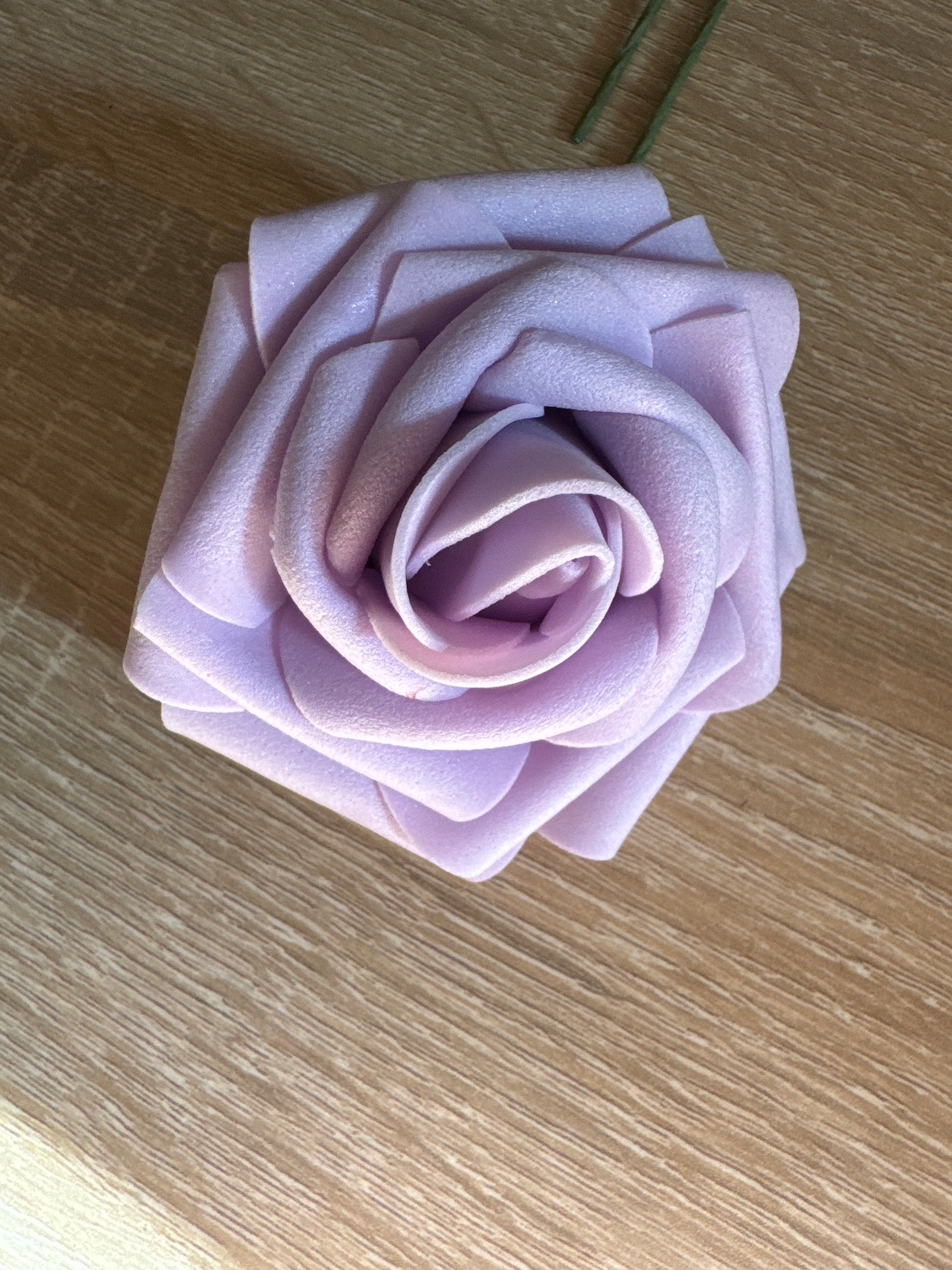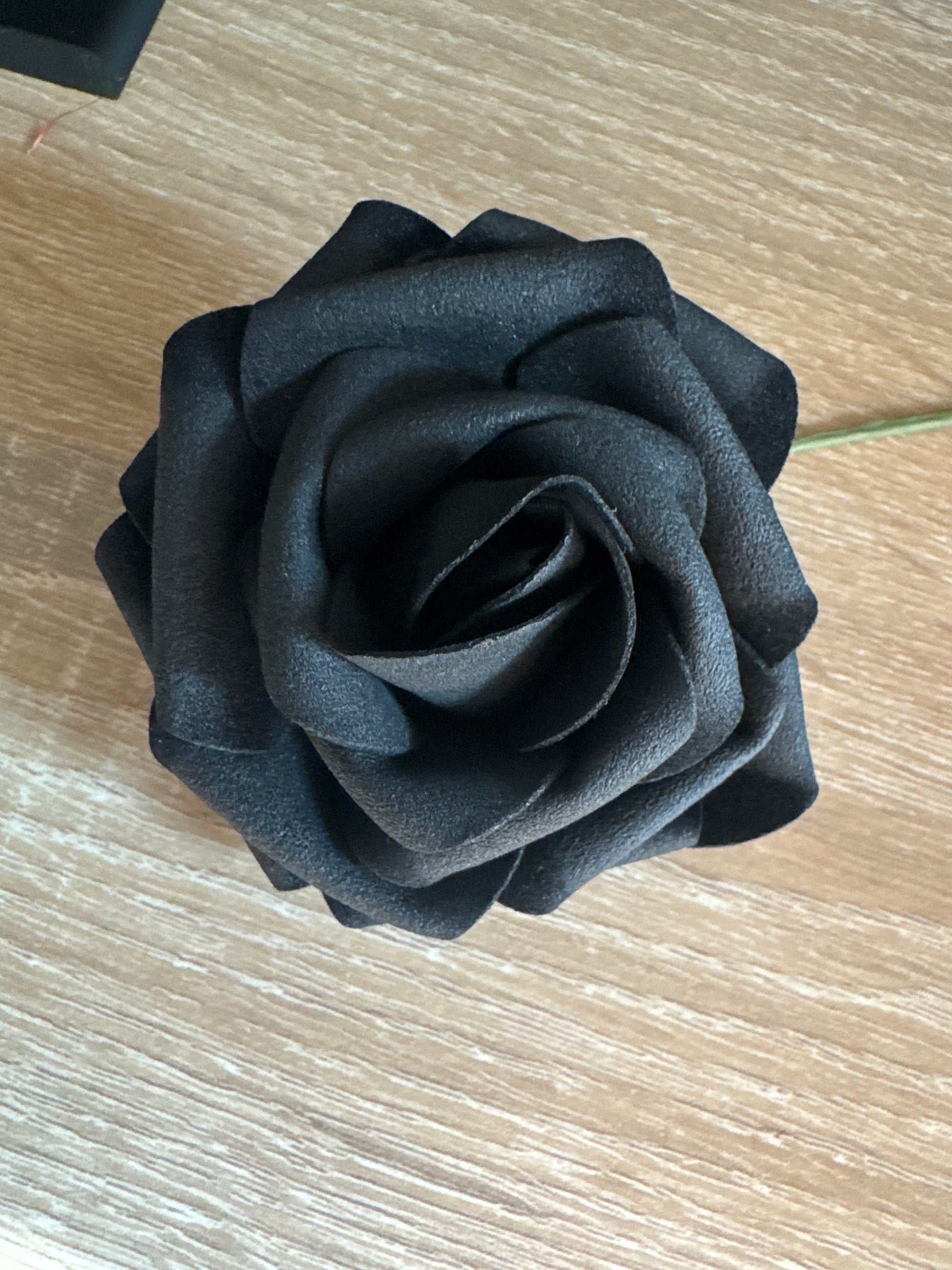 - Matériaux : rose en mousse, éléments décoratifs, tige et feuille synthétique