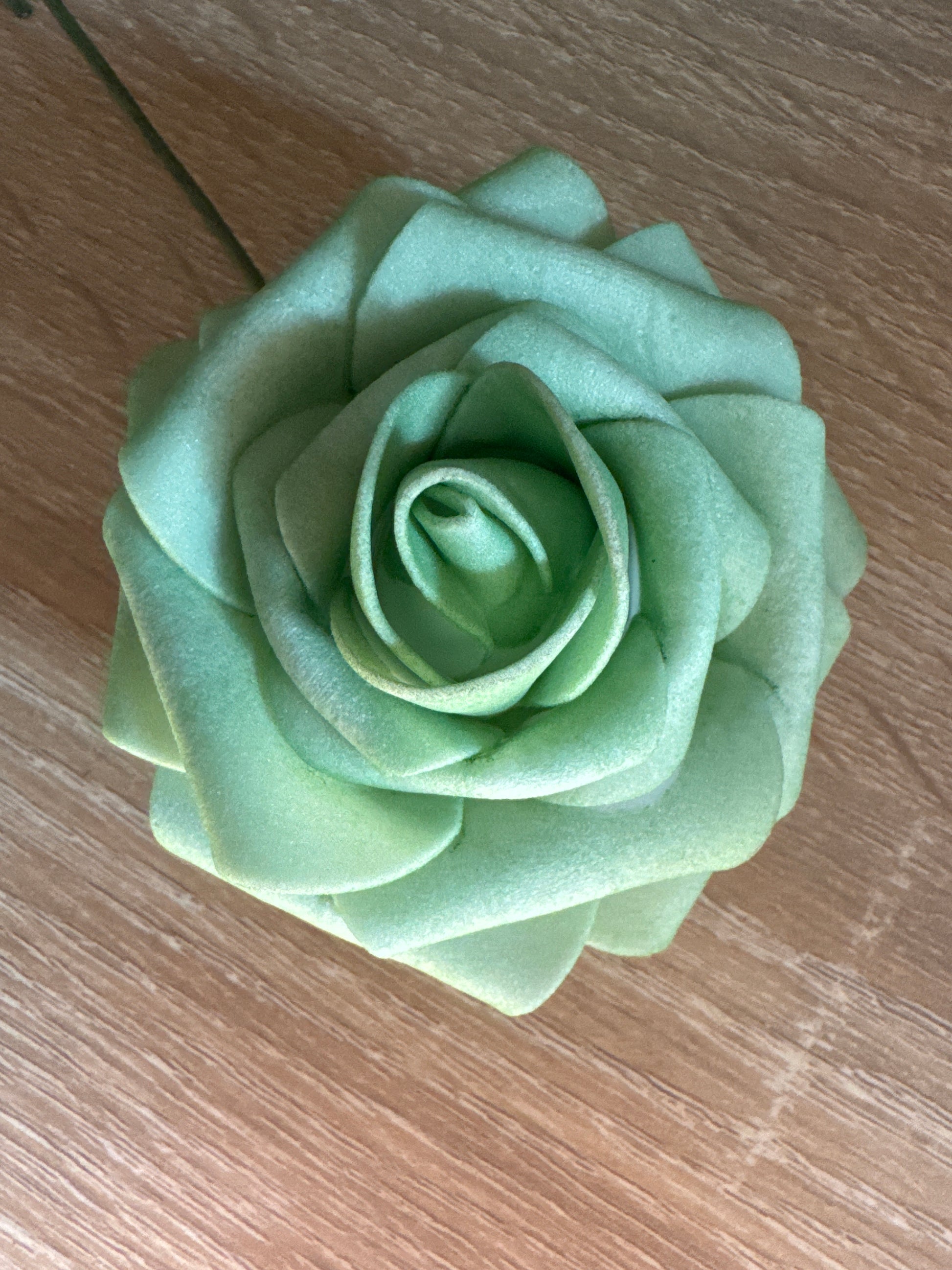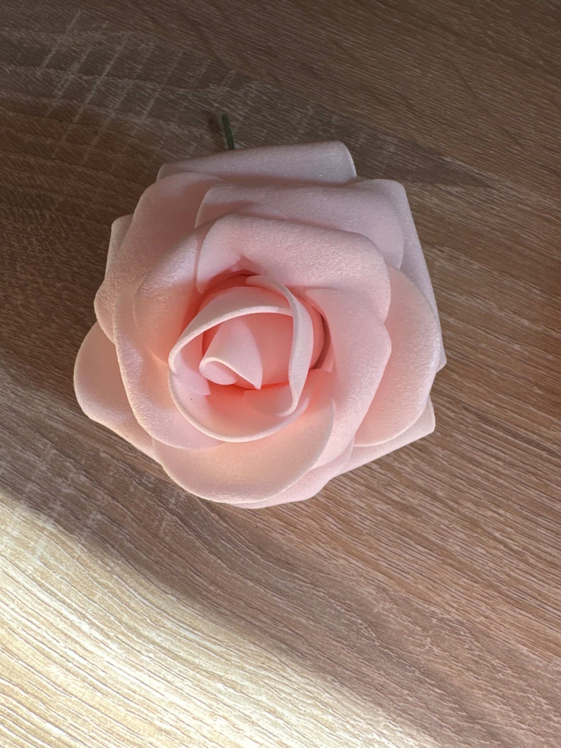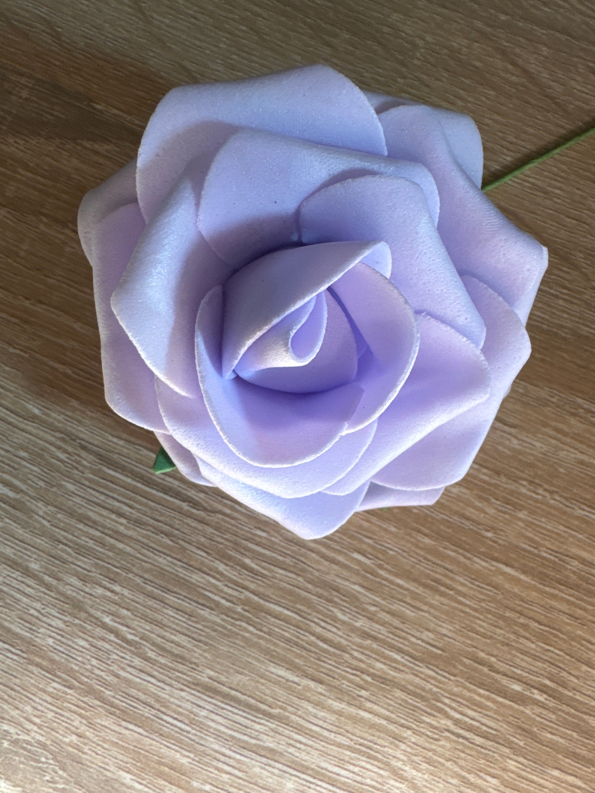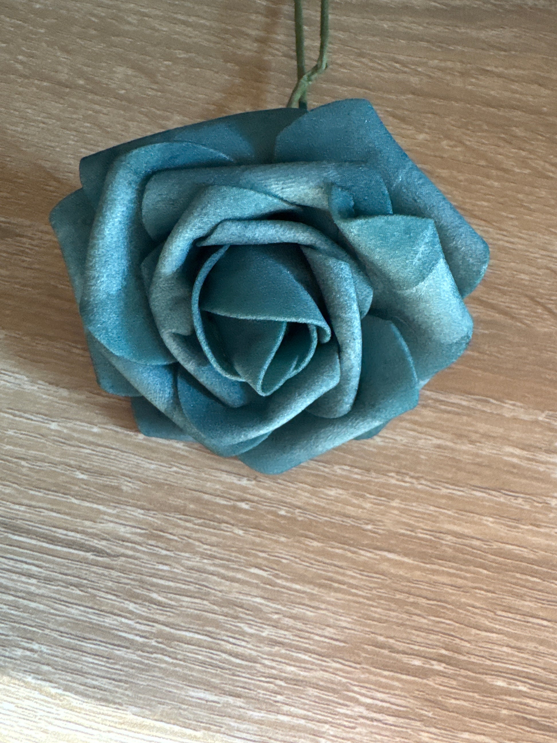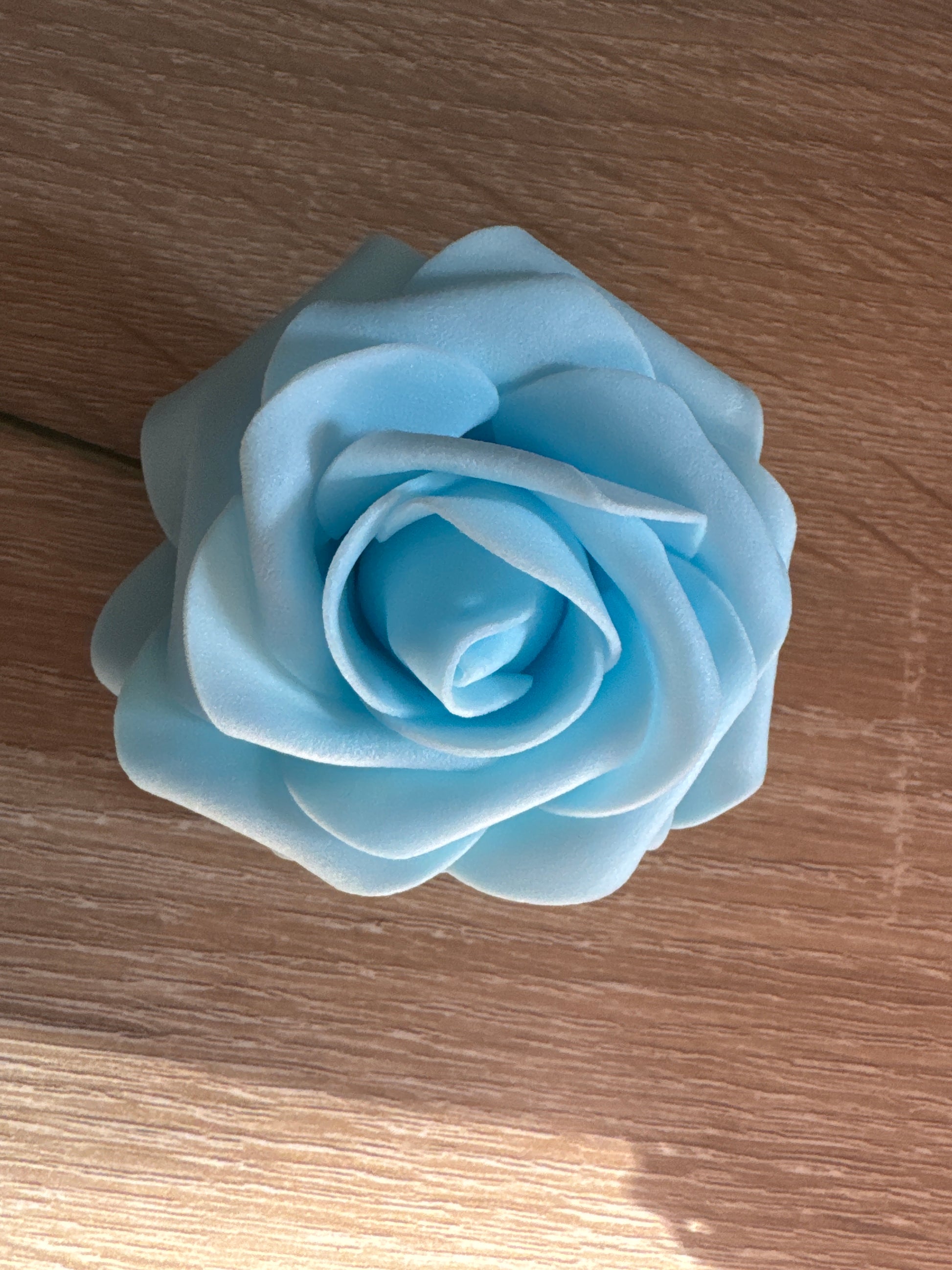 - Matériaux : rose en mousse, éléments décoratifs, tige et feuille synthétique