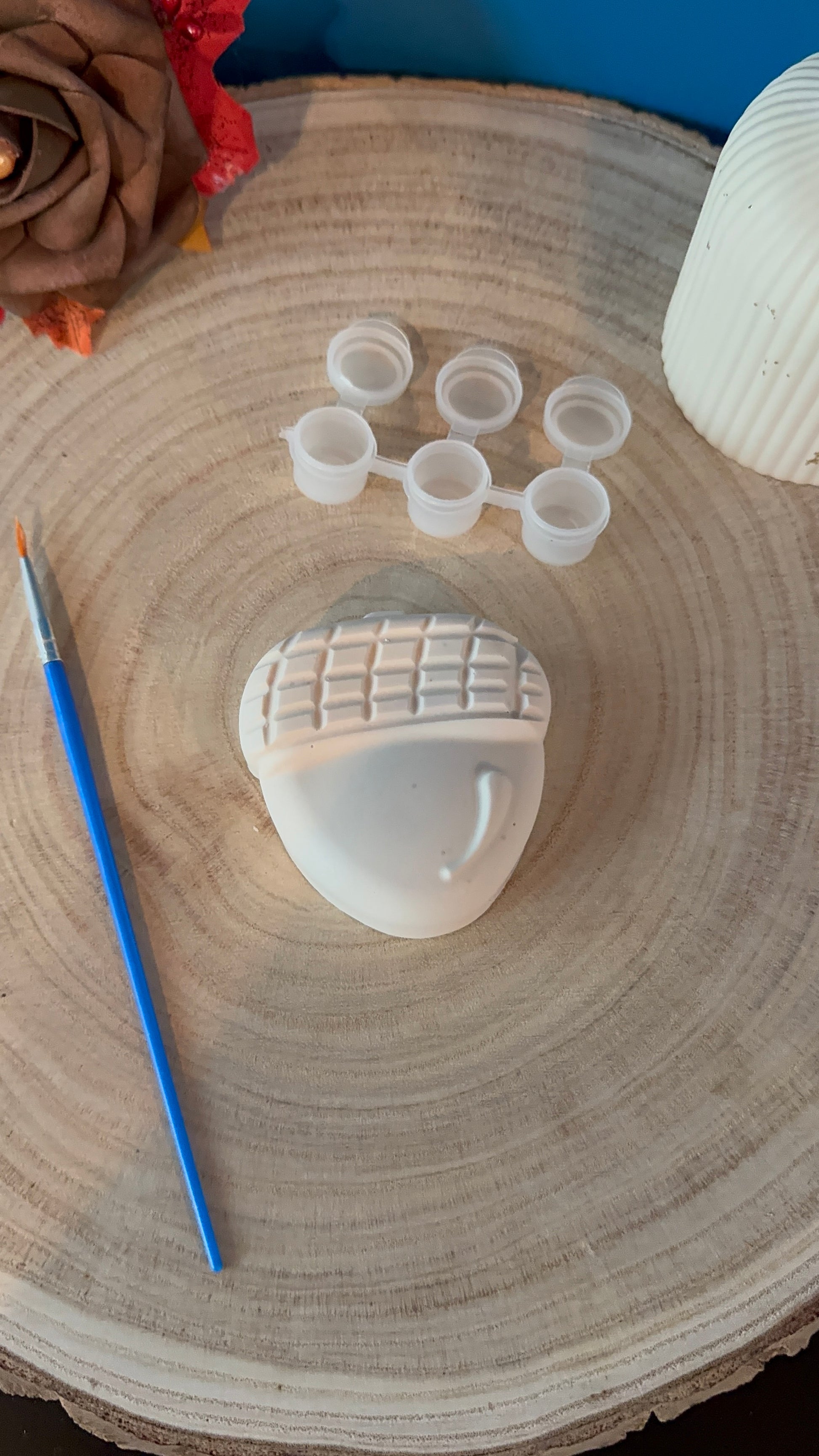 - 3 pots de peintures acryliques (de votre choix à m’indiquer dans personnalisation)