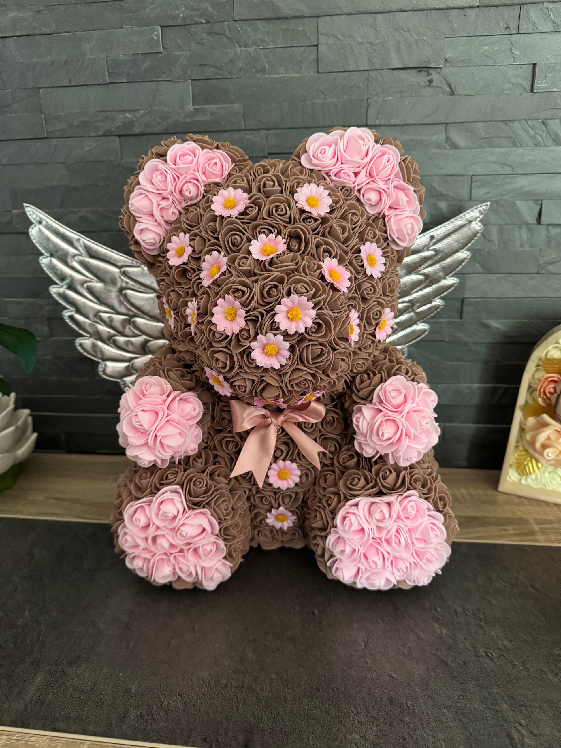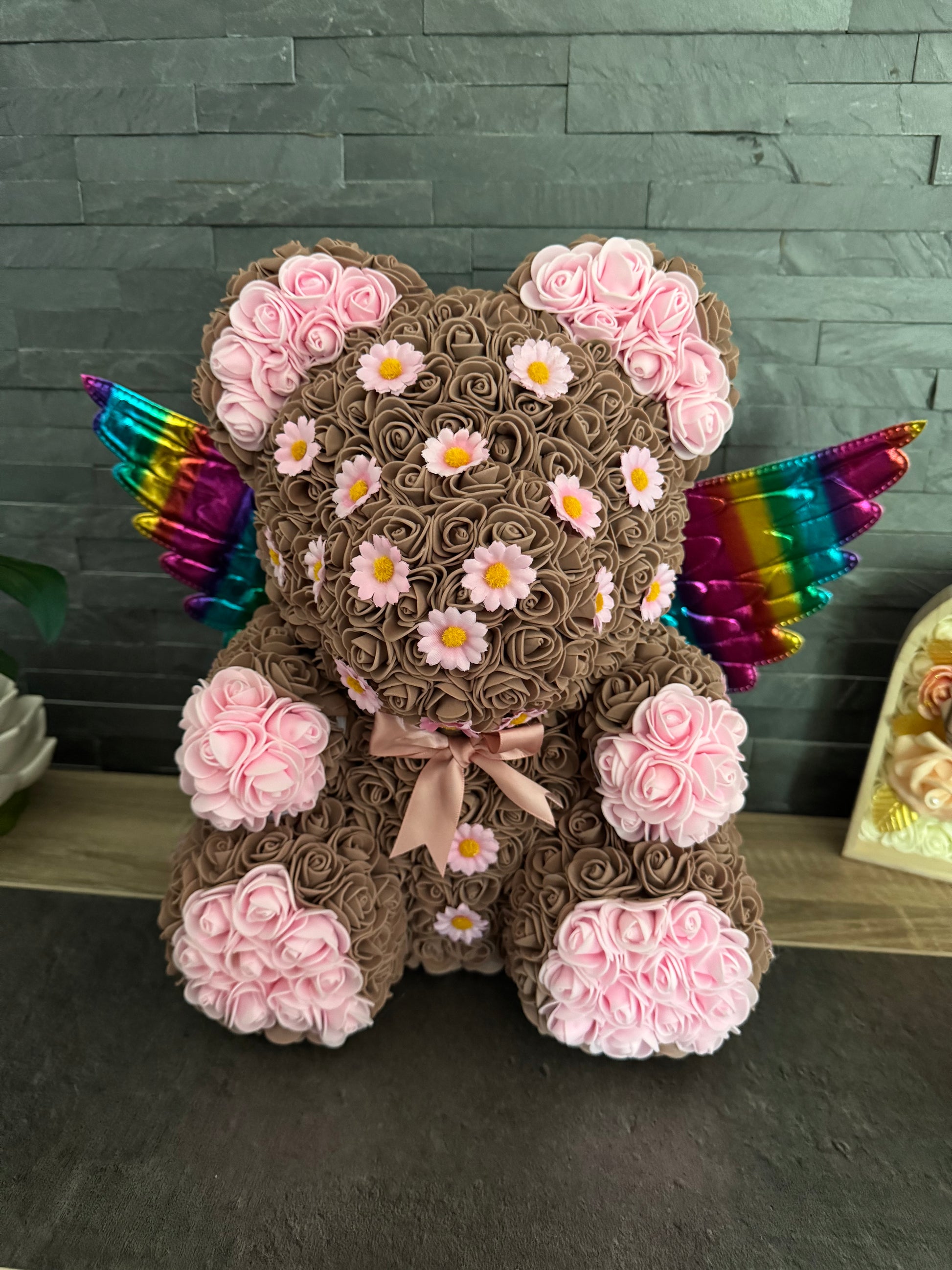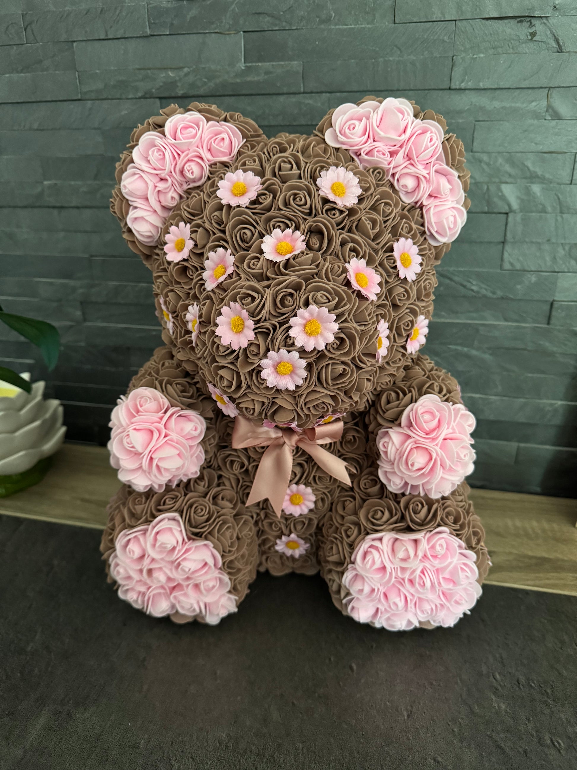 Ce ravissant ourson décoré de marguerites apportera une touche de douceur et de nature à votre intérieur.