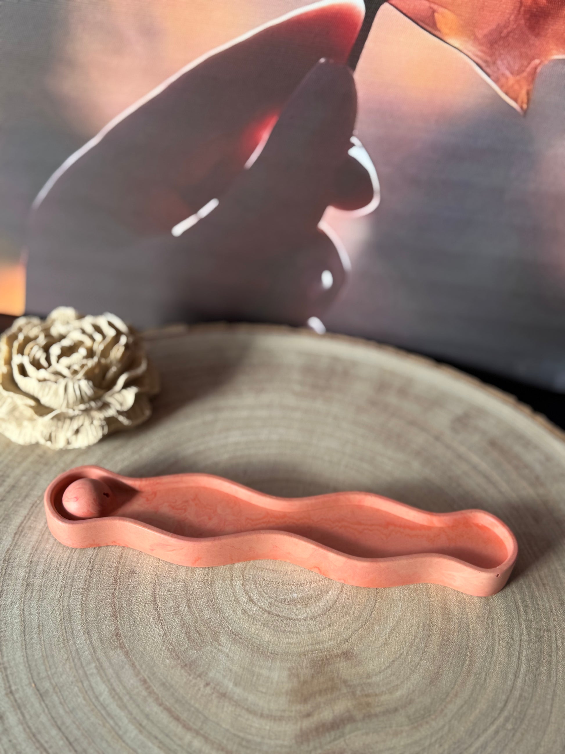 Apportez une touche d’élégance artisanale à vos moments de détente avec ce porte-encens en jesmonite, entièrement réalisé à la main.