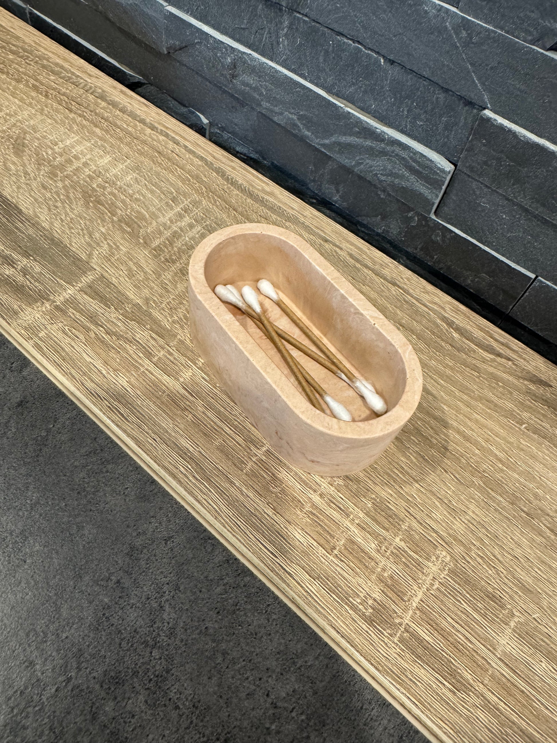 Range coton tige en jesmonite – Rangez et organisez vos cotons-tiges avec style grâce à ce contenant en jesmonite de qualité supérieure. Gardez votre salle de bain propre et élégante tout en ayant vos essentiels à portée de main. Un ajout pratique et esthétique à votre routine de soins du visage.